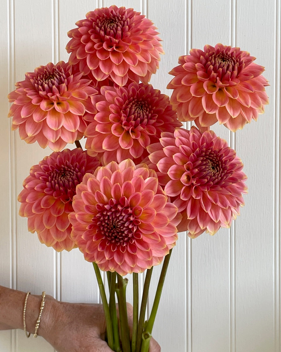 This new variety is one of our best blenders. Because it is pink with peach overtones and a warm glow from its center, we’ve found KA’s® Morning Dew blends perfectly with blooms of many colors. Our florists love these blooms for their versatility. Strong stems and high productivity make this a great cut flower.